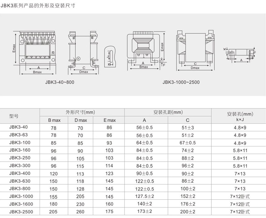 JBK1-4系列机床控制变压器适用于交流50-60Hz,输入电压不超过660V的电路中,作为各类机床、机械设备等一般电器的控制电源、局部照明及指示灯的电源。