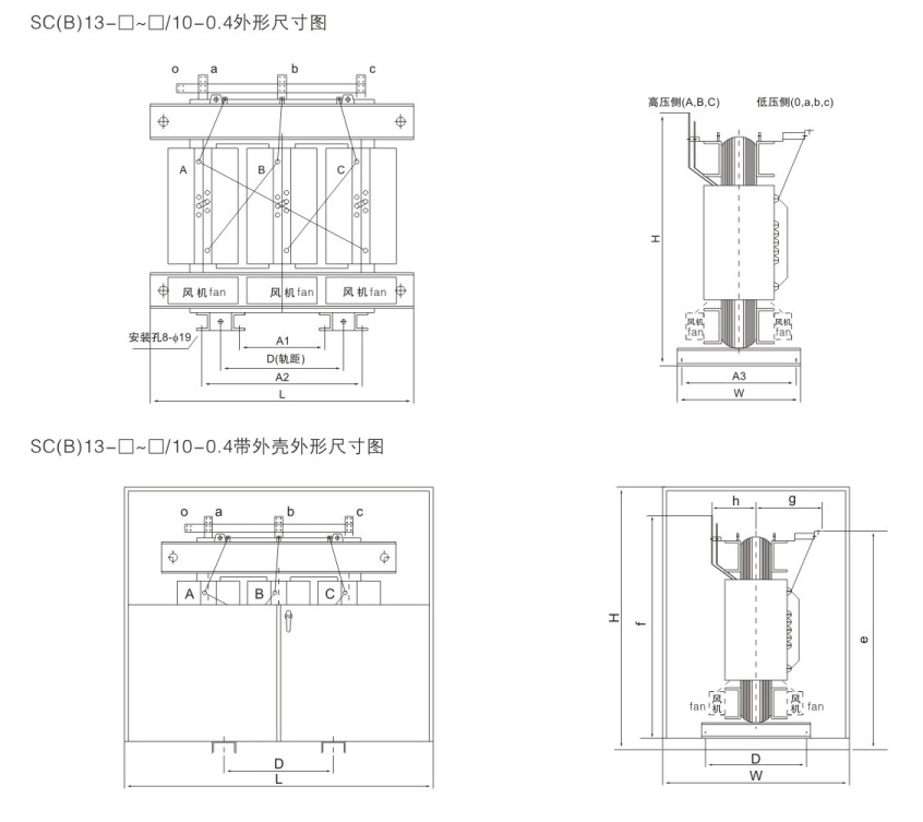 保护外壳对变压器作进一步的安全保护,防护等级有IP20 、IP23 等,外壳材料有冷轧钢板,不锈钢板等供用户选择低压出线用标准母线排出线,侧出线和顶出线均可,也可为用户设计特殊出线方式。