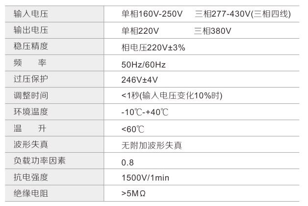 它的结构由接触式自耦调压器、伺服式电动机、自动控制电路等组成、当电网电压不稳定或负载变化时,自动采样控制电路发出信号驱动伺服电机、调整自耦调压器碳刷的位置,使输出电压调整到额定值并达到稳定状态。 本系列稳压器为普通型,品种多、规格全、外观美等优点。具有波形不失真、性能可行、可长期运行等特点,设有过压保护功能,根据用户需要,可设欠压,延时等保护功能。可广泛用于任何用电场所,是一种理想的稳压电源。