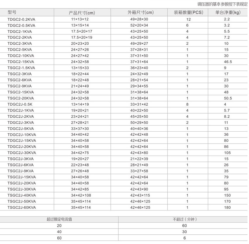 TDGC2、TSGC2系列调压器具有外形美观、 波形不失真、体积小、重量轻、效率高、使用方便、 运行可靠等特点,基性能更为优越、可广泛用于工业(如化工、治金、仪器仪表、机电制造轻工等)、科学实验、公用设备、家用 电器中,以实现调压、控温、调速、调光及功率控制等目的,是一种理想的交流调压电源。
